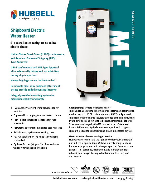 Low Capacity Shipboard Electric Water Heater – Hubbell Heaters